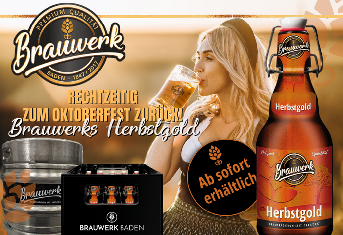 Brauwerks Herbstgold – ein Bier wie der Herbst. Rotgoldene Farbe und kräftig im Geschmack mit einer leichten Hopfennote.